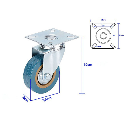 Furniture collection collar 3 inches rubber-coated metal for furniture cart quiet 75mm