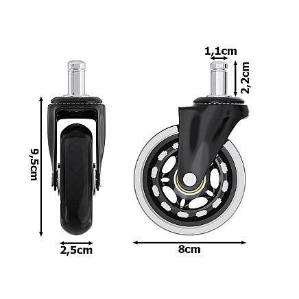 castors with a bearing system make all the problems go away. They are noiseless, glide across the floor without resistance and, above all, leave no scratches on the floor.