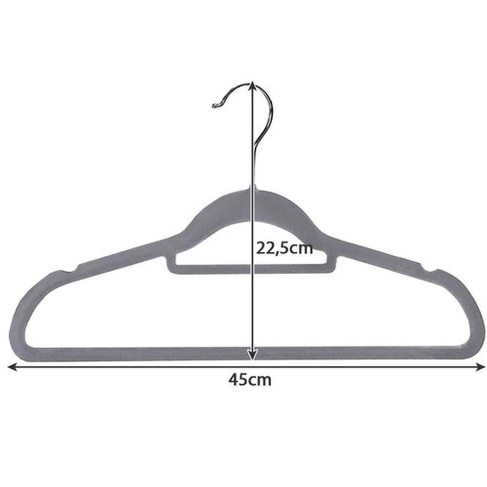 - SPECIFICATION - colour: grey; material: construction: ABS + PET covered with velvet fabric, other elements: iron; dimensions: 22.5 x 45 x 0.6 cm; hanger weight: 77 g; set weight: 1.540 kg; weight in packaging: 1.715 kg.