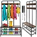 Ruhhy standing shelf with hanger - 182x100x35.5 cm - seat bench and 2 shoe shelves - 12 clothing hooks - metal loft frame - stable organizer for the hallway