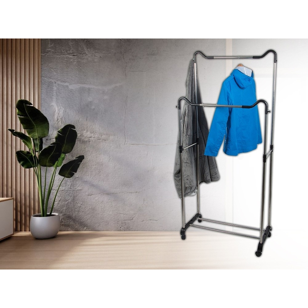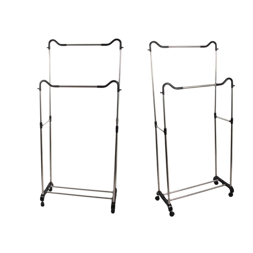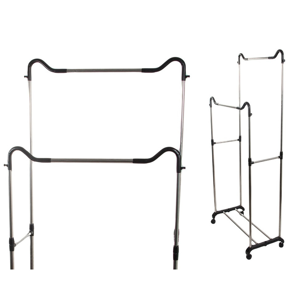 MOBILE WARDROBE HANGER DOUBLE SHELF RACK ON WHEELS