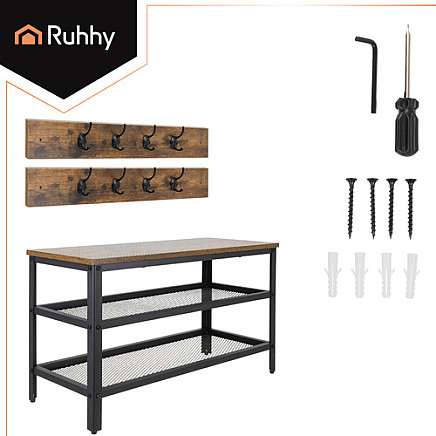 Style, order and functionality in one - RUHHY 2-in-1 shoe cabinet and hanger.- 2 in 1 - cabinet, bench and hanger in one set - The functional design combines shoe storage, a seat, and holders for jackets and bags. This means everything you need in the hallway is in one place, saving space and time.