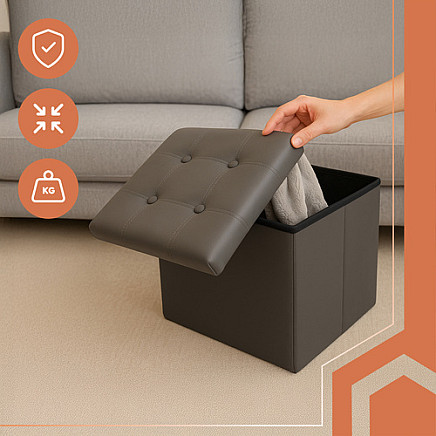 Pouffe with storage, foldable cube made of eco-leather, practical design and order in one Ruhhy!