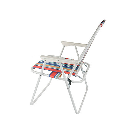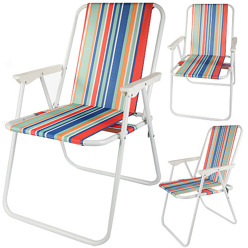 The lightweight folding hiking chair is the perfect choice for a summer holiday by the water, in the garden, camping or on a camping trip. Thanks to its compact design and low weight, you can easily take it to the beach, under a tent or to the allotment. The classic holiday striped design fits in perfectly with the summer climate.