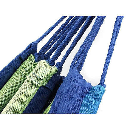 The set comes with two cords with which we can fix our hammock. You can, for example, read a book in it while gently swaying in the soft hammock.It is made of durable material, just like the thickly woven cords. All this makes the hammock durable and air permeable, so it will be very pleasant to use.When rolled up, it takes up little space, making it easy to move it to another place or to store it in your home or flat. Simply tuck it into the included carry case - it will easily fit into your backpack.