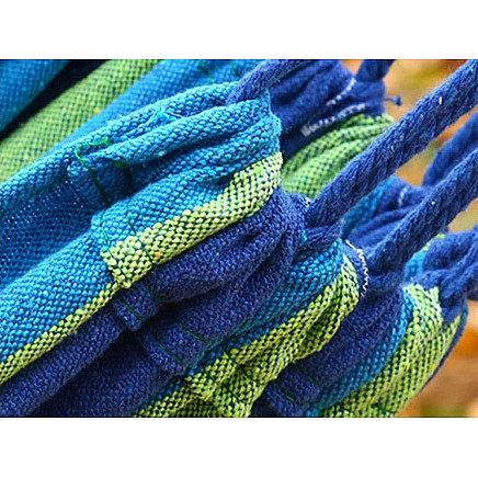 It is made of durable material, as are the thickly woven cords. All this makes the hammock sturdy and air permeable, so it will be very pleasant to use.