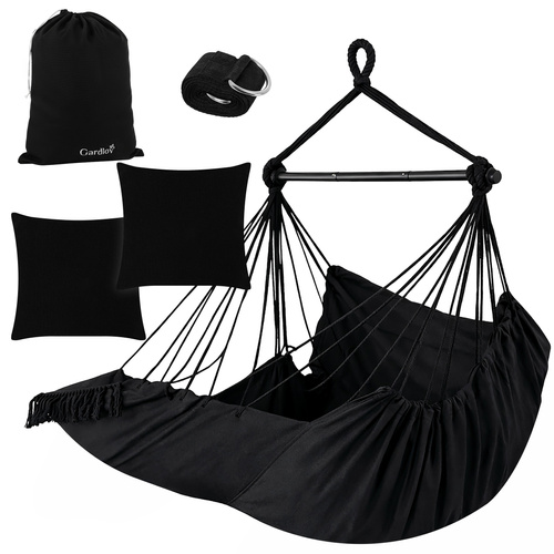 The Brazilian Gardlov hanging chair is a large, comfortable A garden and balcony hammock that will transform an ordinary corner into a cozy relaxation zone in a matter of moments . The enveloping, strong cotton fabric, two soft cushions, and a stable metal bar ensure comfort and safety. an ideal place to relax after work, read a book or take a moment to unwind in the garden, on the terrace or in the living room .