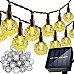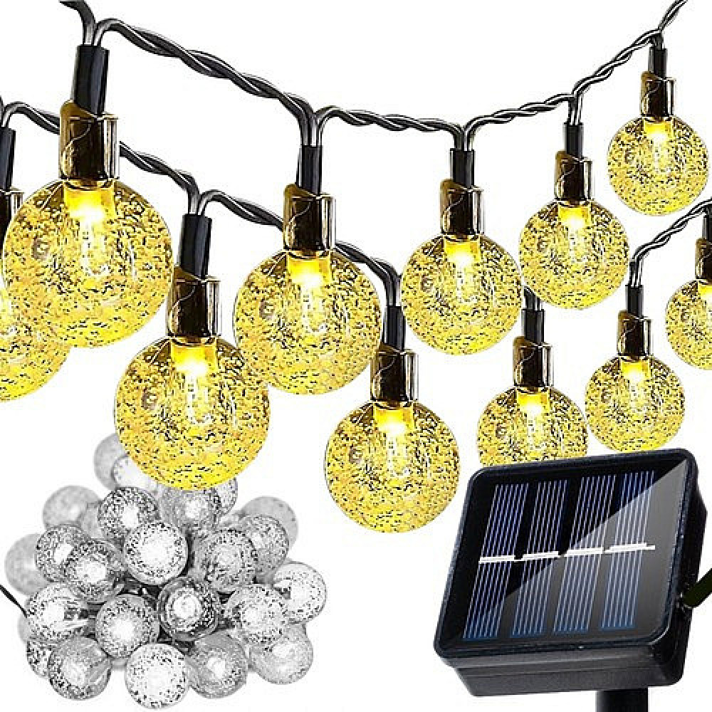 - SPECIFICATION: material: PS, ABS, PVC, silicone; color: warm white; number of lighting modes: 8; distance between balls: 9.5 cm; solar panel: 3 V 600 mAh; battery 600 mAh; waterproof: IP44; number of balls: 50; charging/working time: 6/8h; total length: 700 cm; cable length with lights: 475 cm; ball diameter: 2.1cm; weight: 0.450 kg; weight in packaging: 0.512 kg