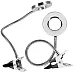 It has a large and sturdy sponge-filled clip, so it does not take up space on the desk and will not scratch it. It is powered by a USB cable.