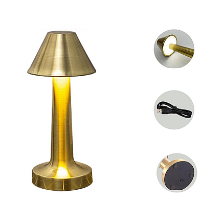 The lamp is powered by a rechargeable battery, which can be charged using the USB Type-C cable included in the set.
