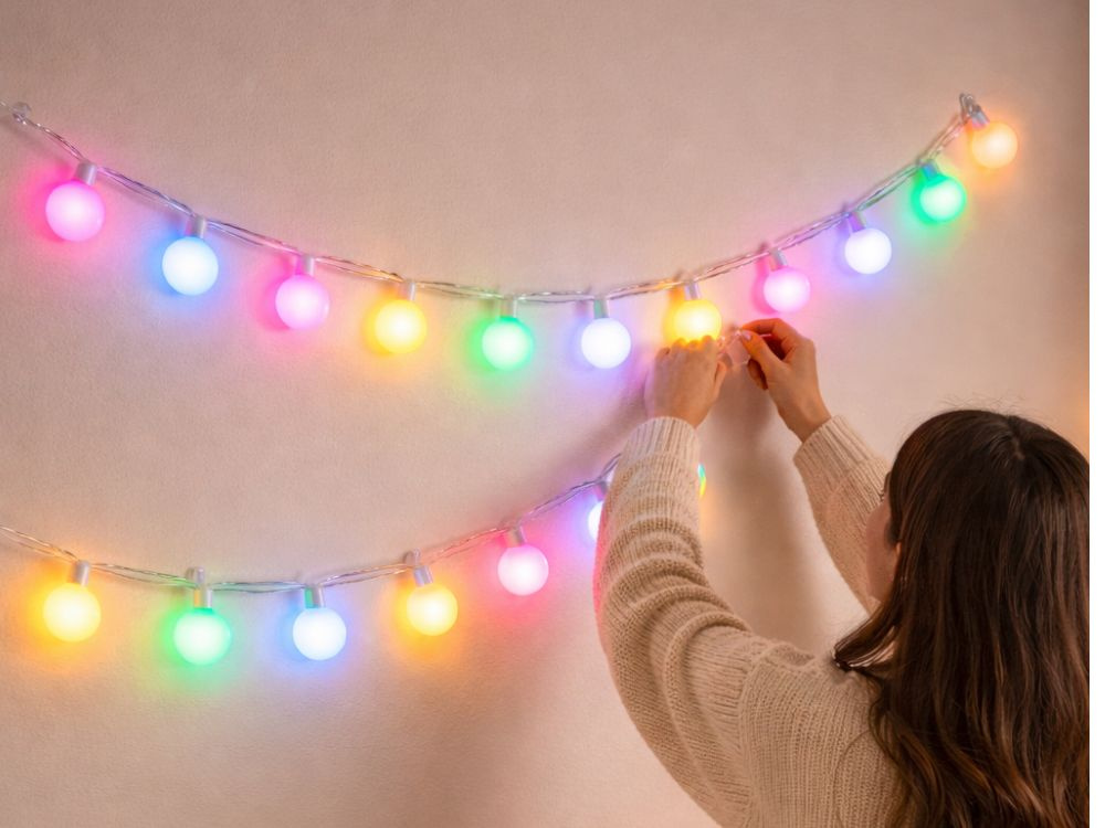 The lights glow in a variety of colours, creating a striking and pleasant atmosphere. They are ideal for decorating a room, balcony or party. You can adjust the colours to suit your mood and the occasion.