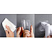 Attachesto the wall or other surfaces with a strong adhesive. It has space for two soaps and a towel holder.