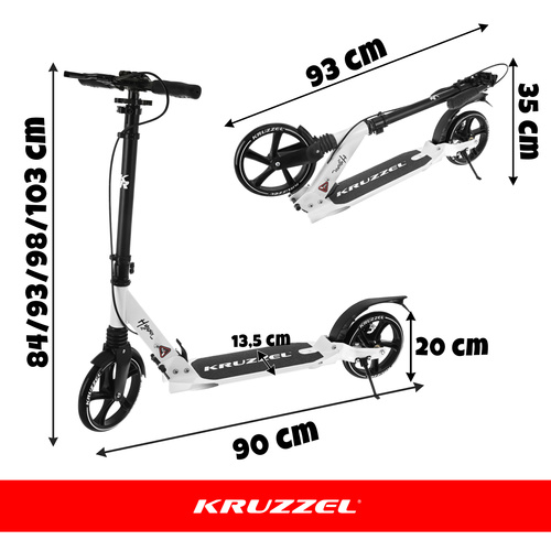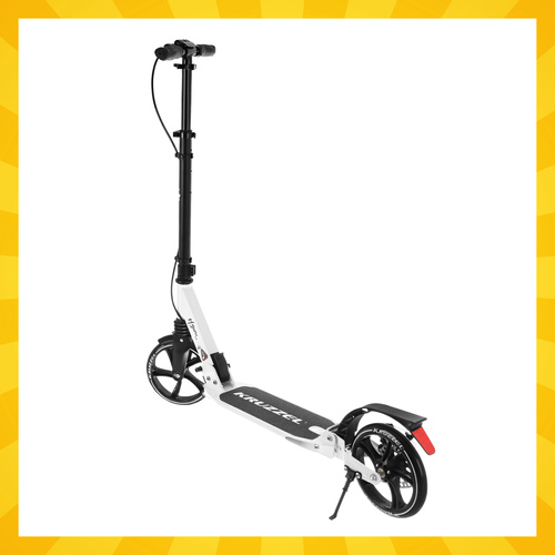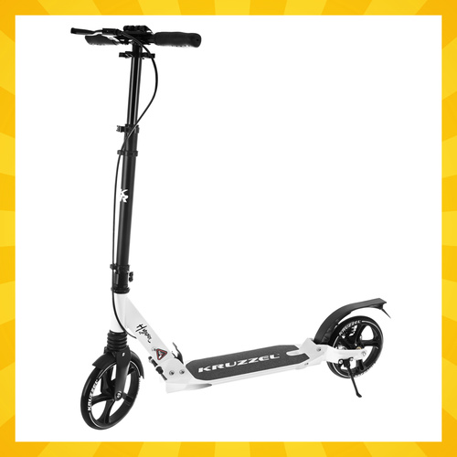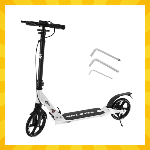 The KRUZZEL foldable scooter is A robust, premium urban model designed for both children and adults . Large 20 cm rubber wheels, ABEC-9 bearings, and a dual braking system ensure a smooth, safe, and comfortable ride. The lightweight aluminum construction and quick folding make it ideal for everyday use.