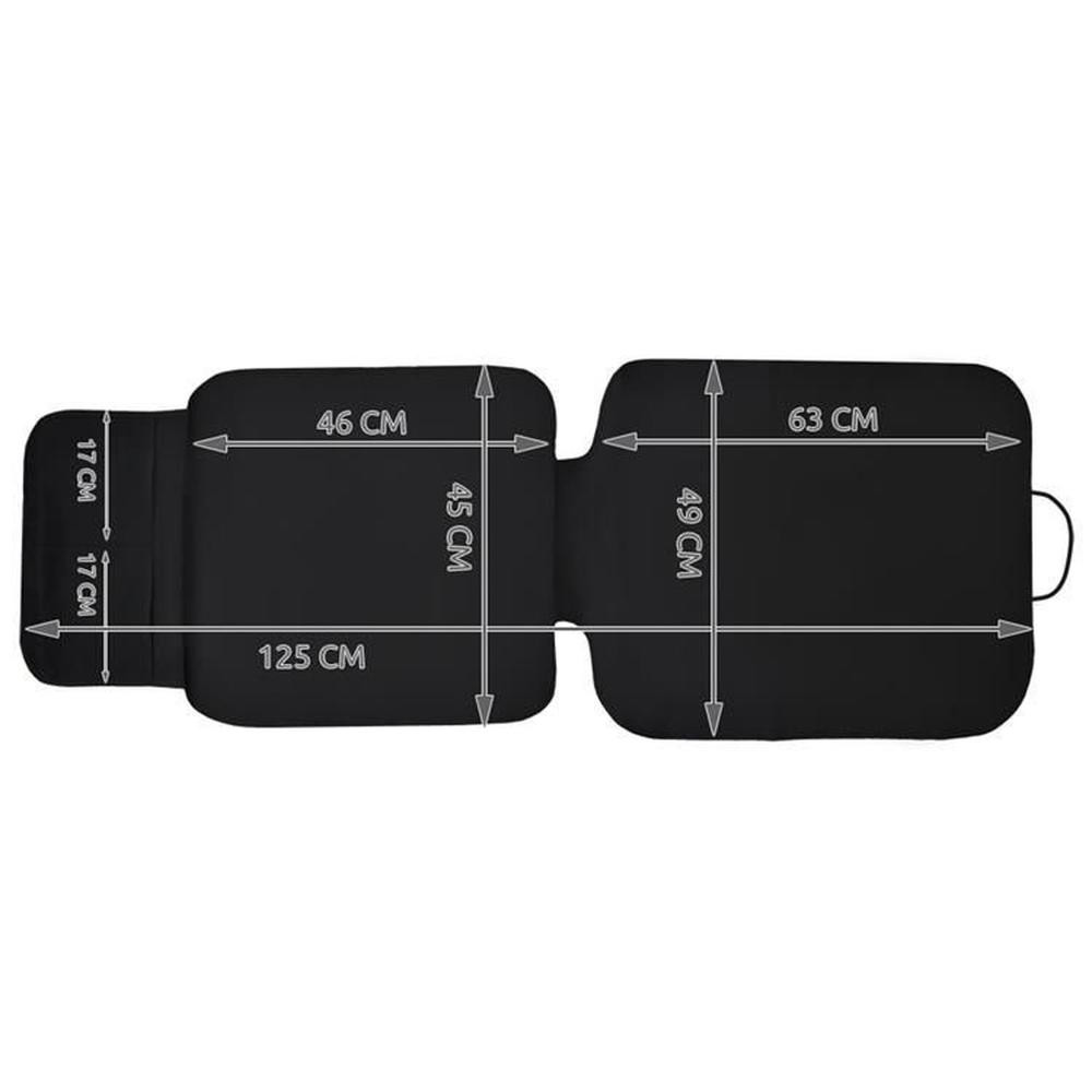 Keeping a car clean when children are travelling in it can be quite a challenge. A car seat mat will protect the seat upholstery and make cleaning much easier. The mat is made of durable polyester material that is easy to clean, as dirt does not penetrate the fibre structure. The seat is additionally lined with dense polyester, which is a waterproof layer. The protective mat is easy to install – just spread it on the seat and attach it to the headrest using an elastic band sewn into the upper part of the backrest. Two pockets located at the bottom of the mat will allow you to store necessary items. The outside is made of perforated material, which allows you to quickly check what is inside. The entire protective mat can be washed in the washing machine. The mat fits most standard car seats and under most car seats, both those mounted forward and rear-facing, including those mounted in the ISOFIX system.