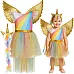 Unicorn costume for children, fancy dress costume for a ball, magical set with a dress, headband and wings - for a little princess in size 110 - 116 cm KRUZZEL!