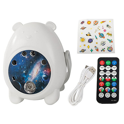 Create a magical atmosphere in your room or at your party with the cute bear-shaped projector! This device combines the function of a bedside lamp and a projector that displays cosmic motifs, stars, nebulae and gives your room a special atmosphere.
