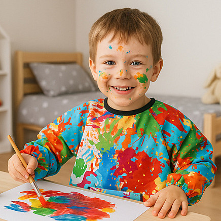 - effectively protects clothes - painting apron for children is made made of waterproof material that protects clothing from paint, glue and ink , long sleeves and a loose fit provide full coverage - perfect for kindergarten and home activities