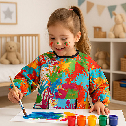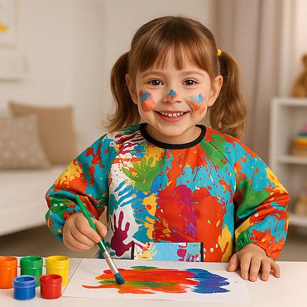 - colors that children like - I have an apron vivid colors that encourage putting on , the child willingly wears his or her "artist's outfit", treating it as an element of creative play