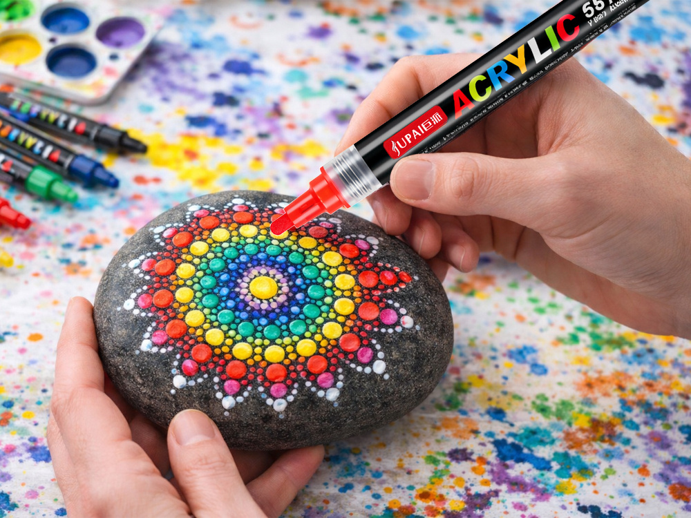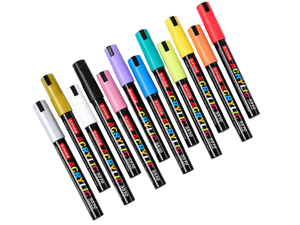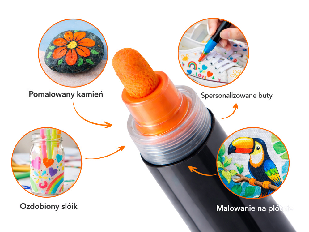 WIDE RANGE OF APPLICATIONSAcrylic markers are perfect for many different surfaces. They can be used to paint on stone, wood, canvas, paper, cardboard, ceramics, glass, plastic and fabrics.