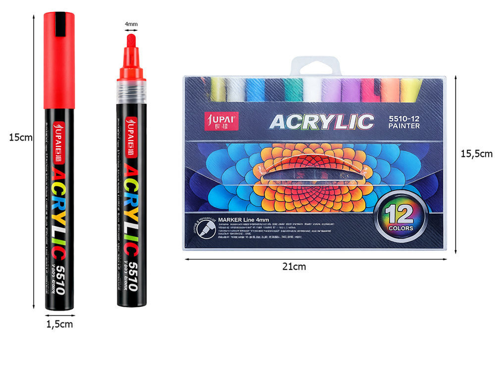 SET INCLUDES:Set of 12 acrylic markers