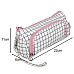 LARGE WHITE CHECKED PENCIL CASE SCHOOL POUCH - EXTENDABLE / TWO-COMPARATION