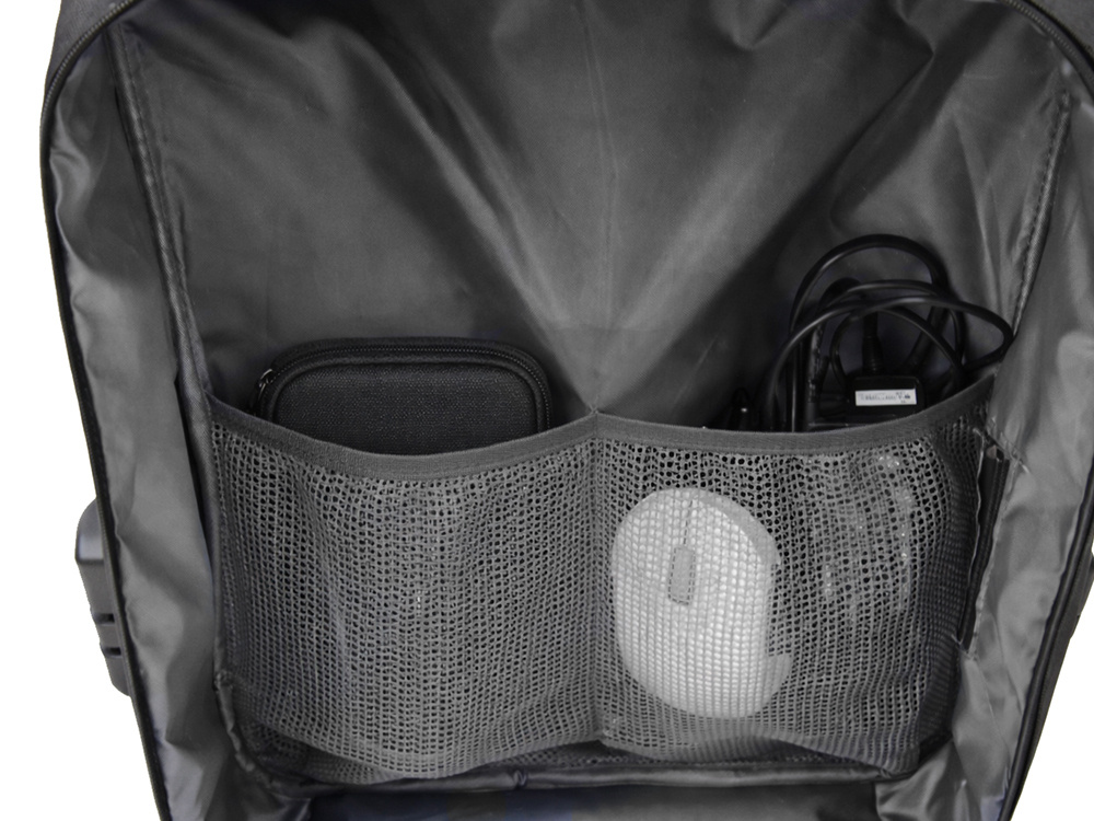 USB PORT – CHARGING ON THE GOThe rucksack has a built-in USB port, allowing you to conveniently charge your phone without taking out a power bank. This is a practical solution for people who are constantly on the move and need constant access to power.