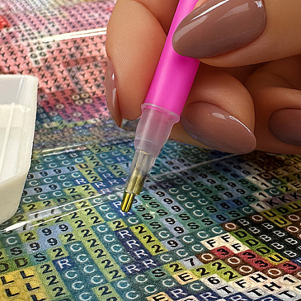 a job for long hours – diamond embroidery involves filling the finished pattern in the image with small diamonds in different colors, it's a job that takes many hours and doesn't require any special skills, just patience and precision