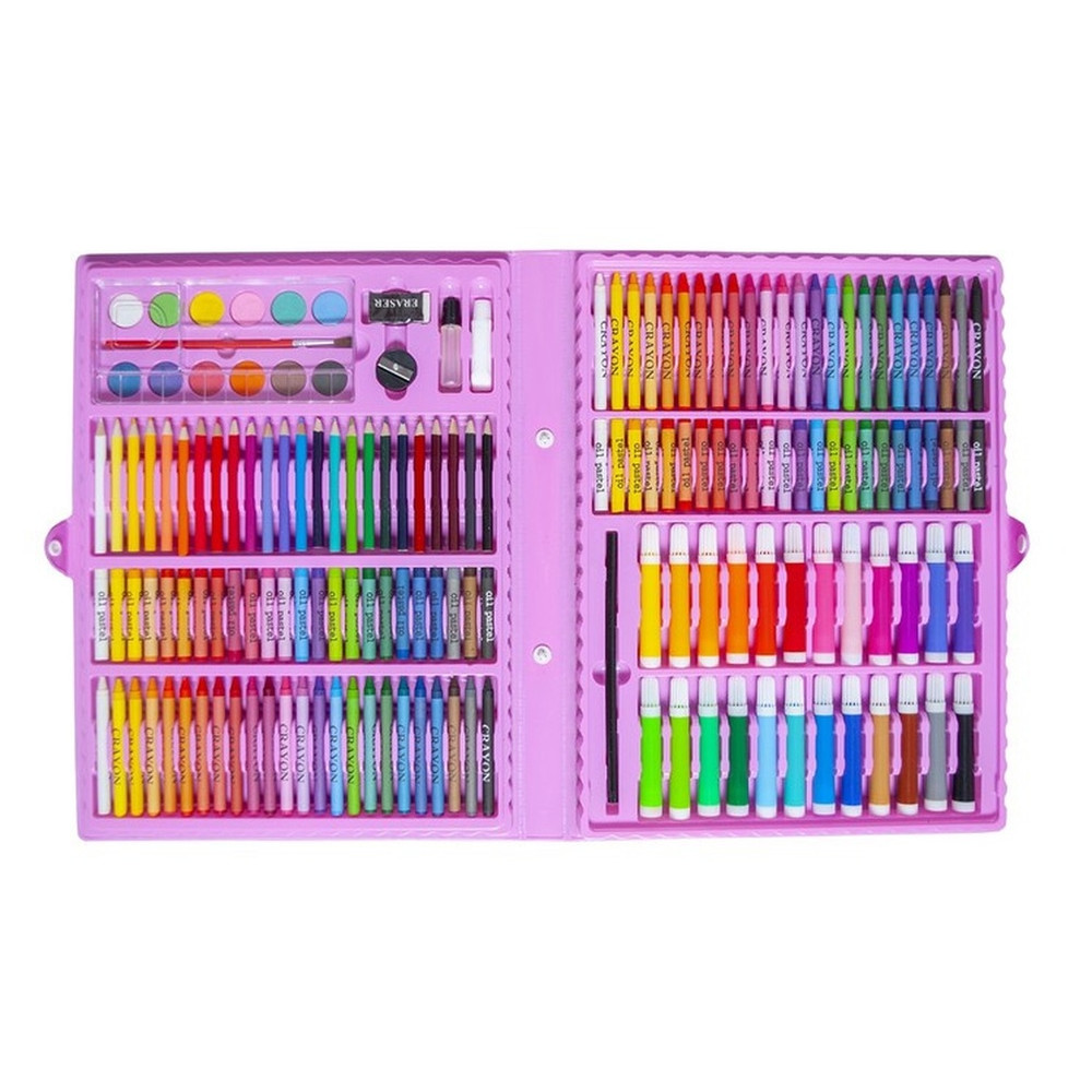 Large painting and drawing set is a great thing to start an artistic adventure for hobbyists as well as for more experienced artists. The set is functional and consists of 16 8 useful parts with a practical case . A large number of elements enable practical use and will allow you to implement various creative ideas. With the help of a huge selection of 24 crayons, 24 markers, 48 oil pastels, 48 candle pastels, 12 watercolour paints, a sharpener, glue, corrector, eraser, A4 sheets of paper, we will easily create the most imaginative, creative and original works. The accessories come in a wide and attractive color range.