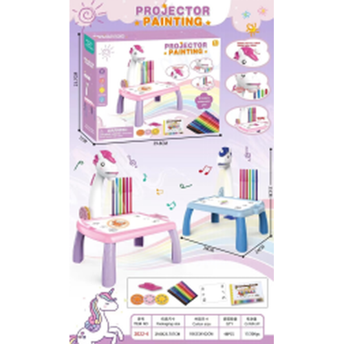 CREATIVE LEARNING THROUGH PLAYThe projector table enables your child to learn to draw by tracing the shapes and pictures displayed. Built-in melodies pass the time, creating a joyful atmosphere while playing.