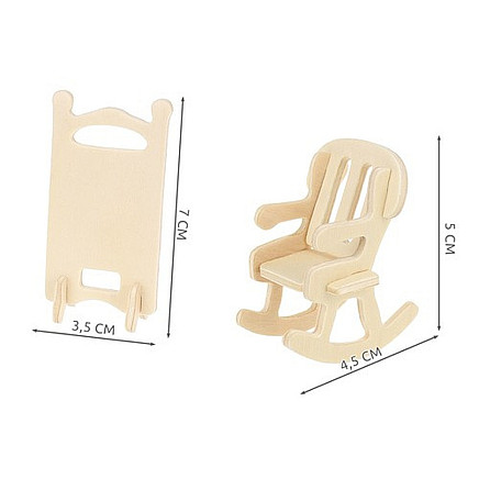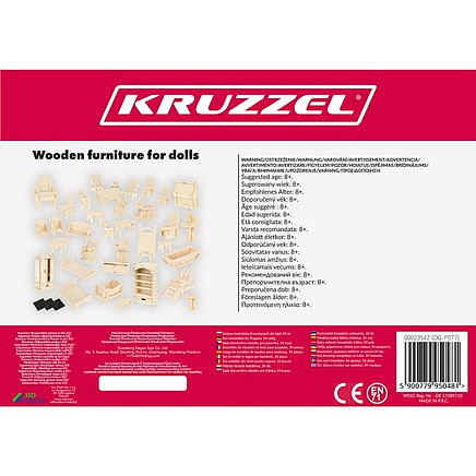 Set of 34 pieces of furnitureThe set includes 34 pieces of furniture for self-assembly. Some of the furniture contains movable elements, e.g. opening doors in the wardrobe. The furniture will be a complete equipment for every dollhouse. The set consists of: