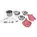 - 13 ELEMENTS – the set includes 13 elements, i.e. everything a little chef needs : 2 pots, a frying pan, a colander, a lid (fits any pot), a set of various types of spoons, a backpack and a fabric pad with a glove .