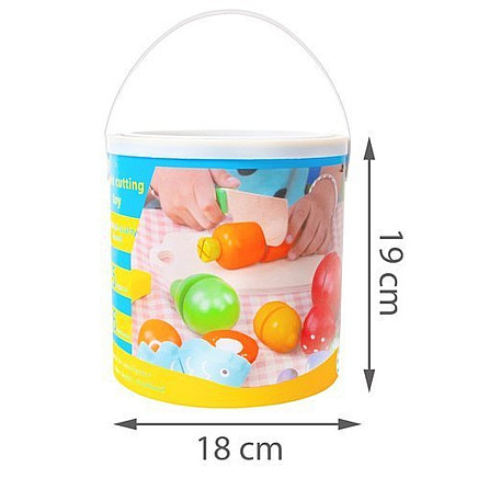 WOODEN FRUITS AND VEGETABLES FOR CUTTING WITH VELCRO IN A BUCKET