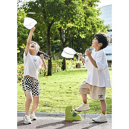 rotating falling flight - the launcher discs move in a unique way, performing a rotating pattern a falling flight that it resembles falling, this dynamic movement makes the fun even more exciting and engaging for children