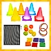 - lots of accessories included - 6 cones, hoops, balls and gym bags in vivid colors they attract children's attention