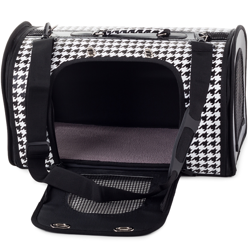The transport bag is the ideal solution for conveniently transporting pets when travelling by bus, train or to the vet It has an elegant and fashionable design, comfortable to transport and has been made of strong and durable material.