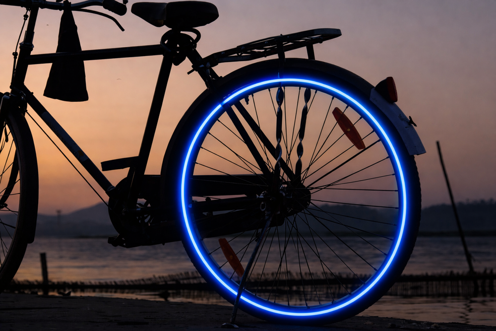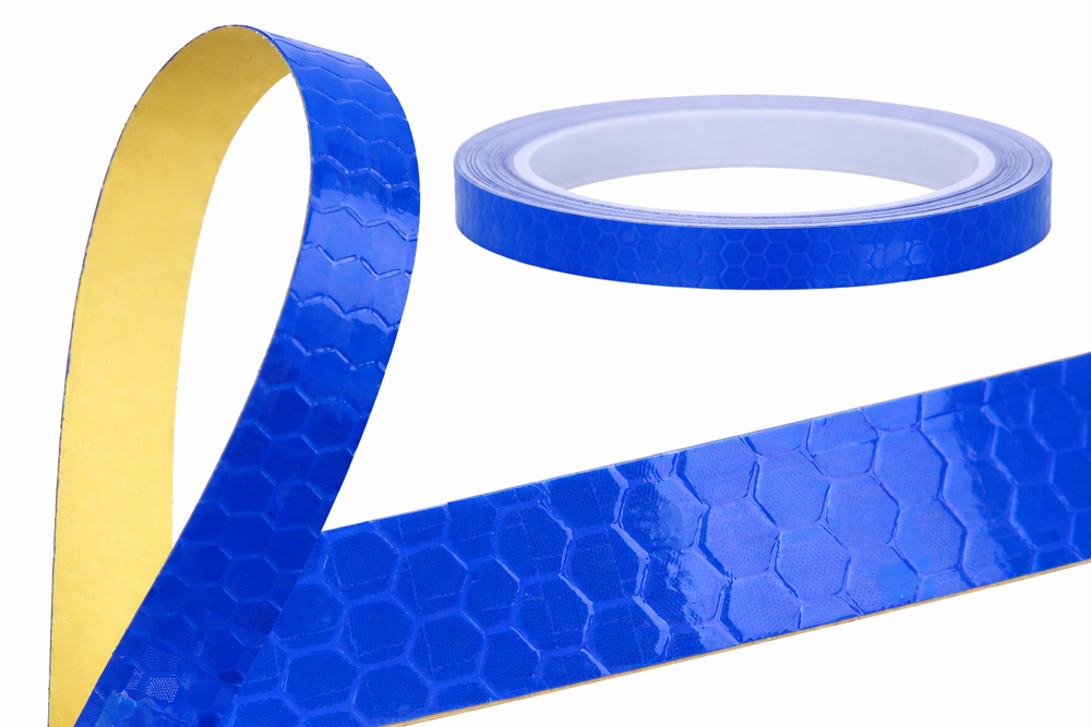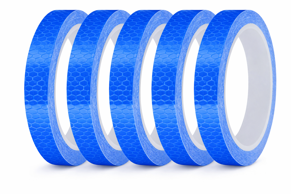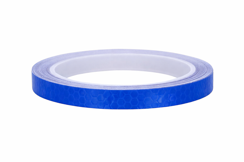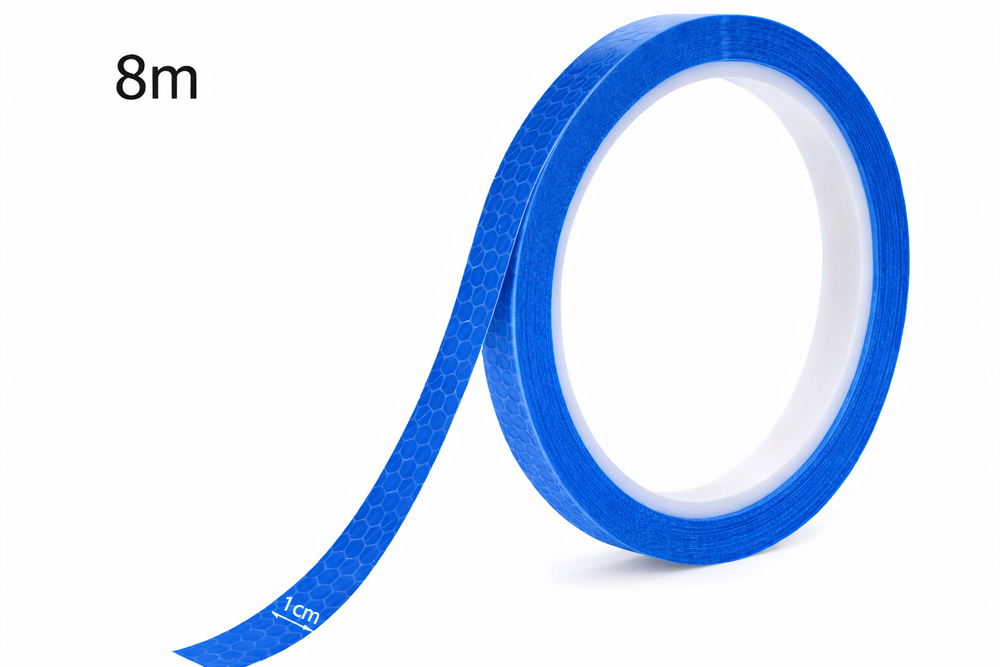 The flexible structure allows the tape to be adjusted to wheel rims, frames, helmets and other curved elements.
