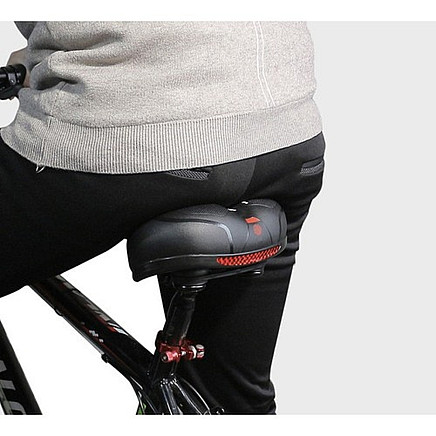 The modern bicycle saddle is soft and comfortable. Additionally, it dampens vibrations very well, so cycling will be a pleasure. The saddle is equipped with 2 springs and a special foam that absorbs shocks while riding. The set also includes a rainproof cover.