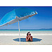 The multifunctional beach umbrella serves as protection from the sun and wind.