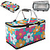 THERMAL FOLDING PICNIC BASKET SHOPPING BASKET GREEN WITH FLOWERS