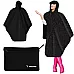 - COMFORTABLE AND TIGHT - the poncho is put on over the head. Simply fasten the short zipper to seal it under the neck. The hood is tightened using strings and has a visor that protects the face from rain.
