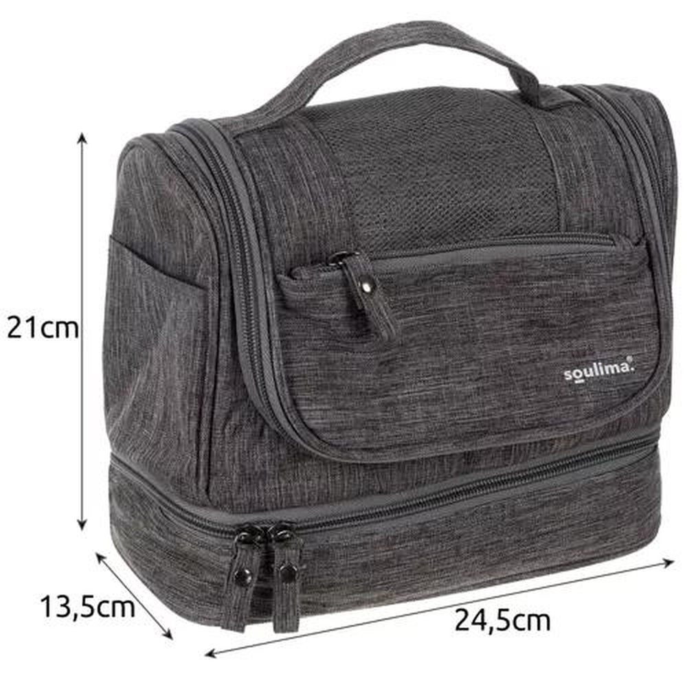 - HOOK + WATERPROOF - the hanger placed inside is used to hang an open cosmetic bag. This is a particularly useful solution when traveling. After hanging, all cosmetics are within reach! Additionally, the material from which the cosmetic bag is made is waterproof. This is especially important for men who take the entire cosmetic bag to the shower.