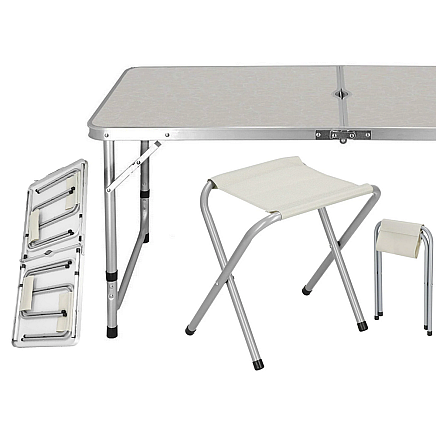 COMPACT AND EASY TO TRANSPORTWhenfolded, the set forms a neat suitcase with a handle , which you can easily take into the car, on a bicycle or on a hike.All 4 chairs fit inside the table - an ideal option for those who value mobility and tidiness in their luggage.