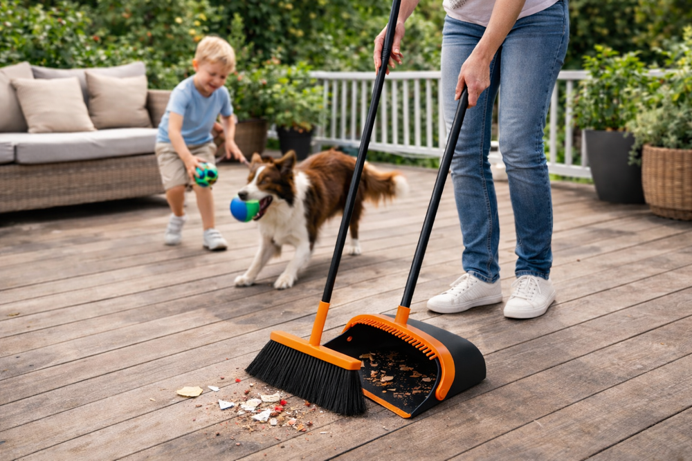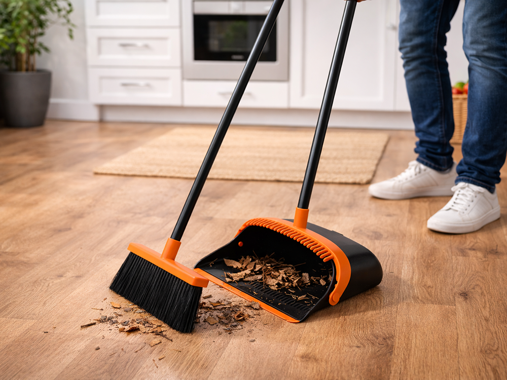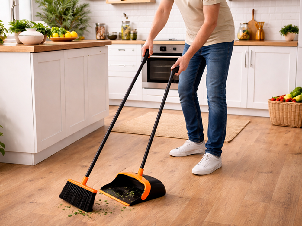 The 2-in-1 sweeping set is the perfect solution for anyone who values comfort and efficiency during daily cleaning. Thanks to the long handles, you don’t have to bend down, which takes the strain off your back and makes the work much less tedious. The broom has dense and flexible bristles that easily pick up dust, crumbs and pet hair from various surfaces, whilst a special attachment on the dustpan allows you to quickly clean the bristles of dirt.