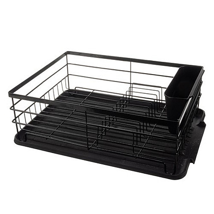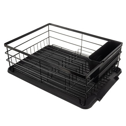 LARGE BLACK DISH DRYER WITH DRAINER LOFT