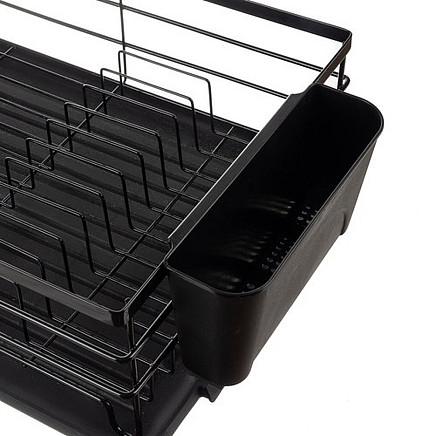 - LOFT LOOK - modern, elegant loft look will make the drainer a decoration of your kitchen! The set includes a removable cutlery drainer, just hang it on the side bars of the drainer. It can be installed anywhere on the drainer. The base of the cutlery drainer and the main water tray are made of black durable plastic. Additionally, the universal black color will fit into any interior.