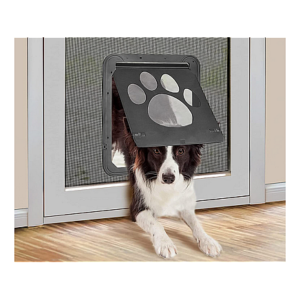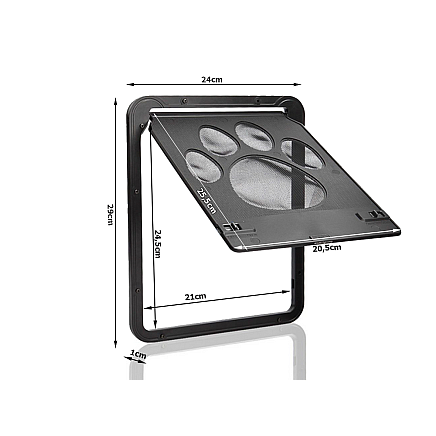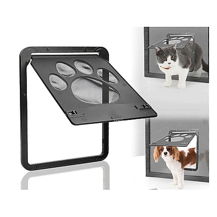 The multi-directional cat flap with large opening is suitable for cats and dogs. It can be mounted on doors with thin walls.
