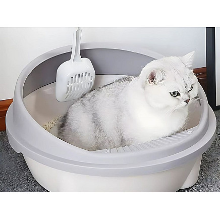 OPEN LITTER TRAY LARGE SOLID WITH SHOVEL WITH HIGH RIM CAT LITTER TRAY WITH PADDLE - A PRACTICAL SOLUTION FOR YOUR PET!