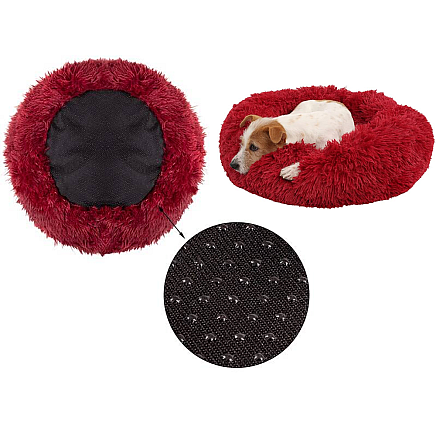 The circular-shaped bed with soft filling retains its shape, ensuring your pet sleeps comfortably. The non-slip underside ensures that the bed stays in place and does not slip.