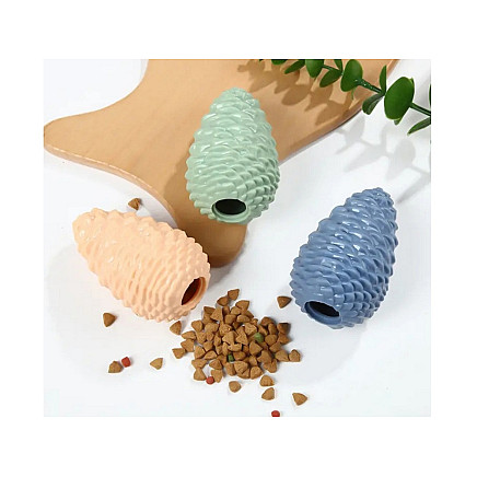 Made of durable and safe material, the cone-shaped toy has an opening into which you can pour your favourite treats or food.