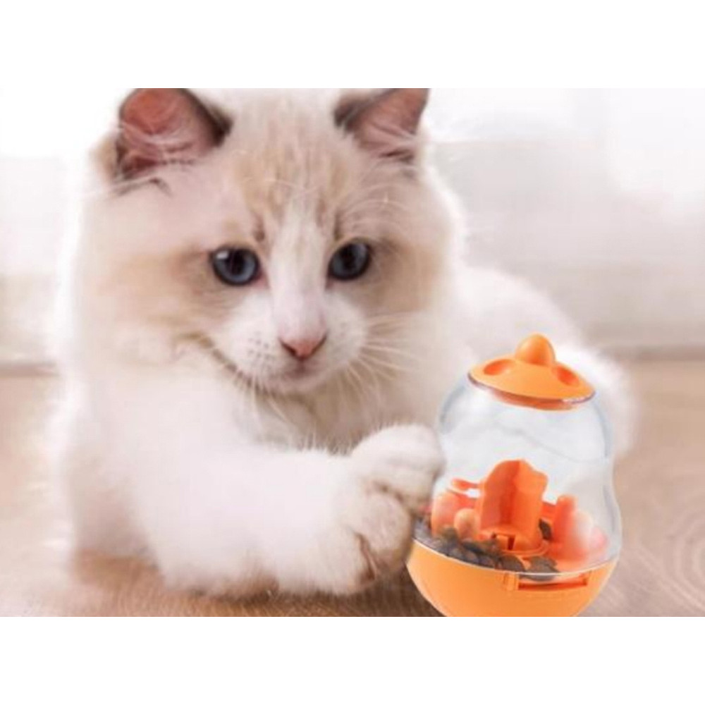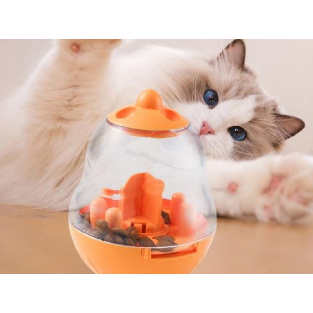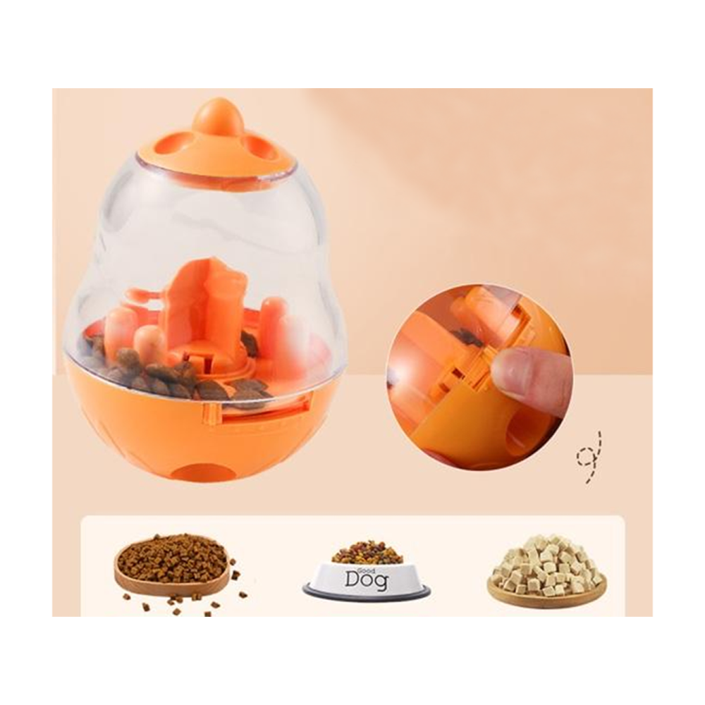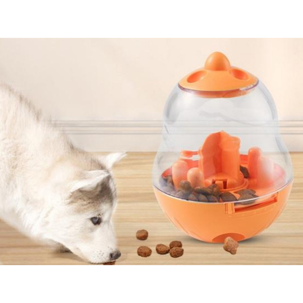 An interactive dog toy that will bring joy to any pet. You can pour your favourite dry food inside the container. When the pet feels and sees the treat inside, it tries to get to it by setting the toy in motion.